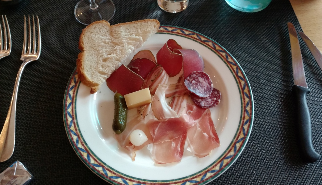 Charcuterie plate at an inn in Lake Champex