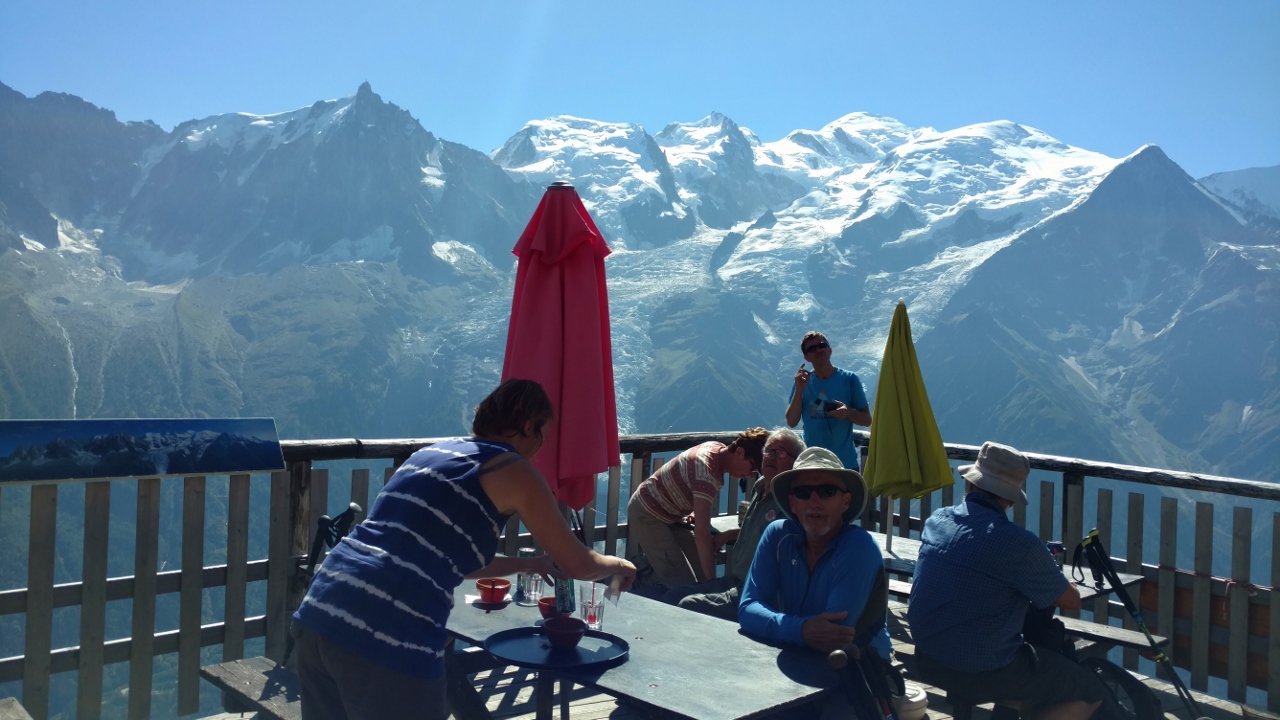View of Mont Blanc from Refuge Bel Lachat, a trailside refuge